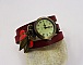 Le cadran de montre est décoré de breloques : 3 sequins ronds émaillés sur 3 tons autour de la couleur Rouge, de charmes Feuilles.