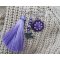 Une broche tendance constituée d'une épingle à kilt argentée avec en bijou central un pendentif avec un cabochon carré en cristal Swarovski violet tout serti des perles Twin beads, Rullas et petites rondes, dans les tons violet, lilas, parme. La broche est aussi composée d'un pompon en rayonne violet de 7 cm et d'une breloque avec des perles assorties Mauve nacrées Swarovski et opaque Lilas, qui se termine par un charme argenté Colombe de la Paix