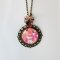 Large pendentif rond style vintage monté sur chaîne bronze vieilli