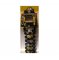 Le bracelet, assorti au collier Kanak noir, serre le poignet à la manière d'un bracelet montre où le cadran serait un carré évidé en cristal Swarovski aux reflets couleur Tabac. Sur un lit de petites facettes noires brillantes, les toupies en cristal Swarovski dessinent des diagonales.