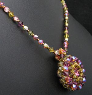 Un beau pendentif (26 mm de diamètre) à réaliser avec pas moins de 60 toupies et 30 perles à facettes et qui se glisse dans son collier assorti.