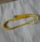 Un bracelet pour montre, double tour de poignet, en simili cuir tressé couleur jaune. Il s'attache par une petite boucle style ceinture argentée.