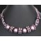 Un collier ras-du-cou qui allie la douceur d'un ruban de mousseline à 7 boules de perles en cristal et nacres Swarovski. Tonalité mauve en contraste avec des petites facettes amethyste et cristal.