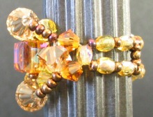 Une bague réalisée autour de cubes et toupies Swarovski, de différentes tailles et de tonalité ambre et jaune orangé.De petite taille : 1,6 cm de haut. La notice est composée de schémas en couleur et d'explications détaillées.