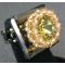 Elégance d'une bague composée d'un cabochon et de petites toupies Swarovski, montée sur un carré en cristal Swarovski couleur Tabac.