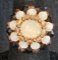 Un cabochon carré Swarovski "Sand Opal" est mis en valeur par une sertissure faite de petites et moyennes toupies Swarovski dans les tons notamment "Mocca".